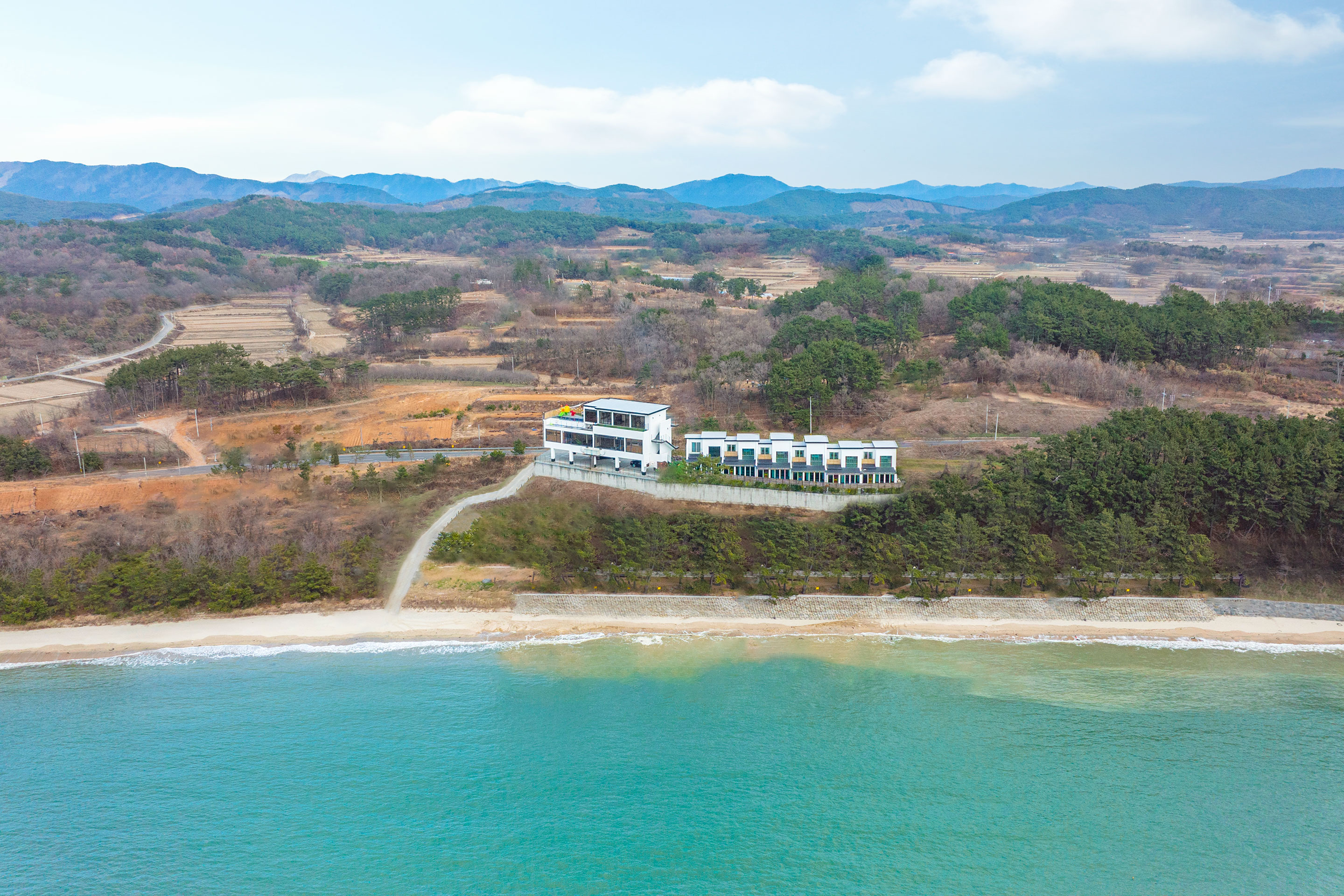 아이들을 위한 안전 시설 및 놀이공간,프라이빗하게 즐길 수 있는 개별 온수수영장과 전 객실 어디서나 즐길 수 있는 맑은 서해안 오션뷰