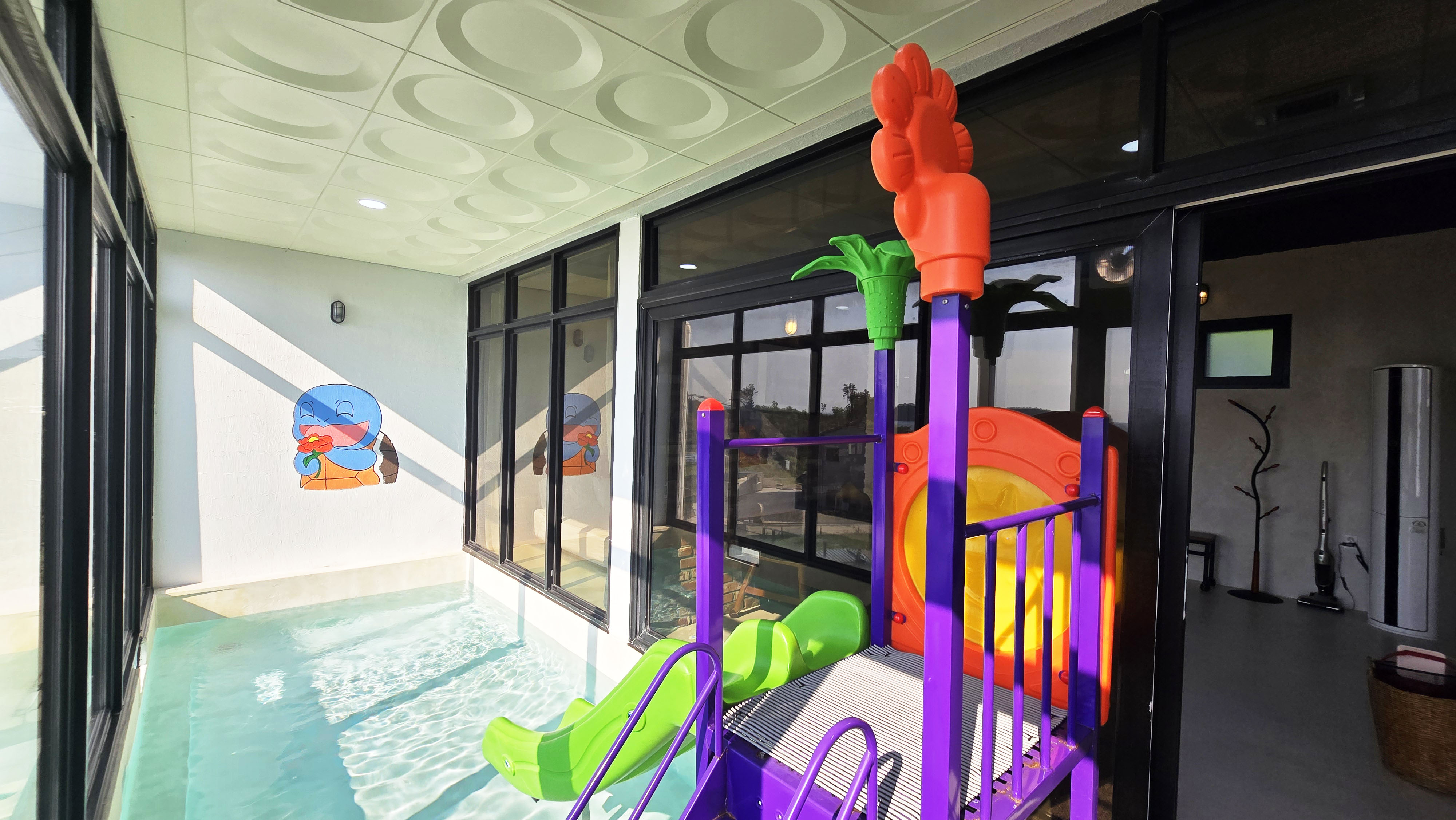 다양한 놀이용품과 개별 미온수풀